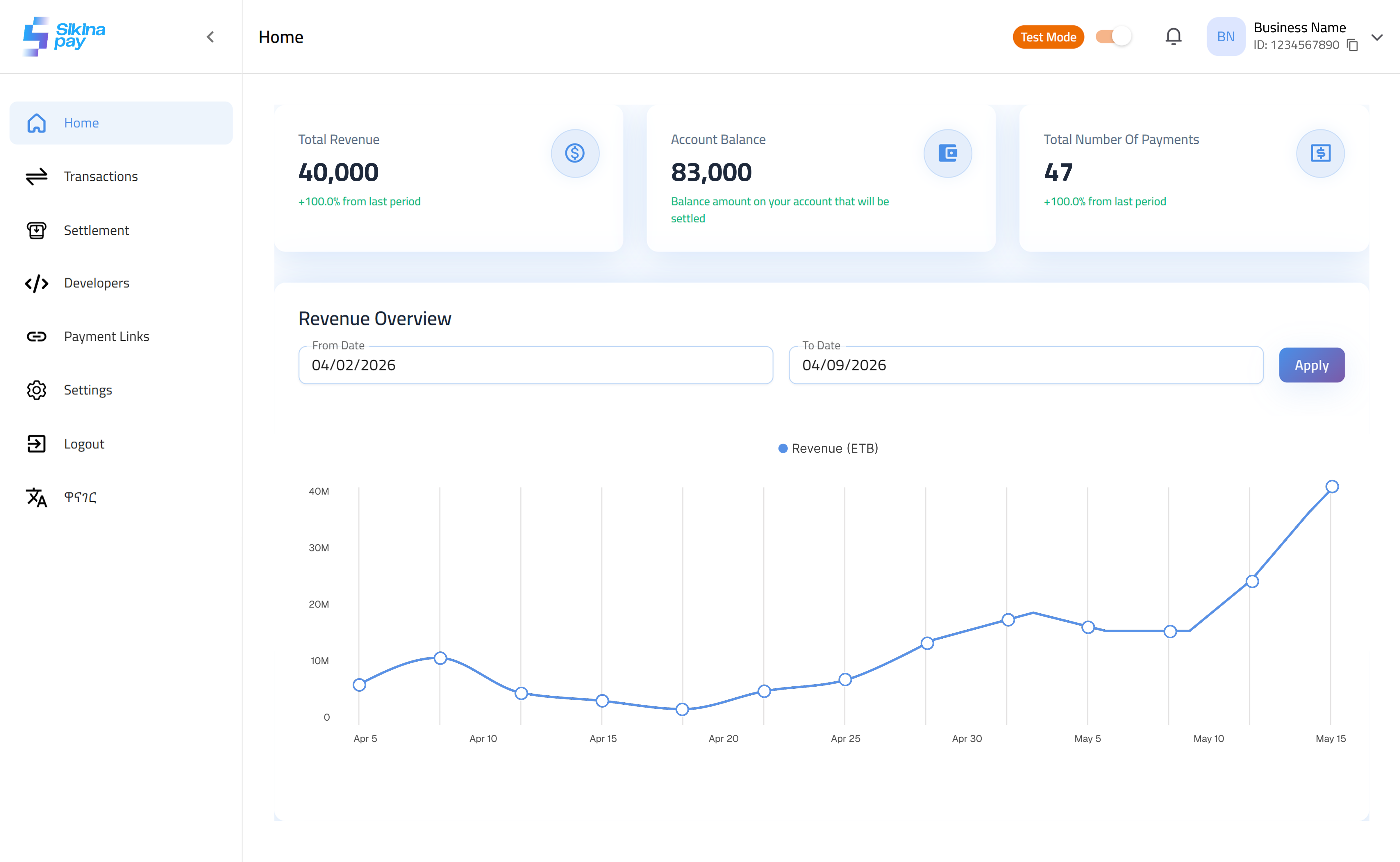 Learn how to use Test Mode for integration and development before switching to Live Mode. Business verification is required to transition from test to production environment.